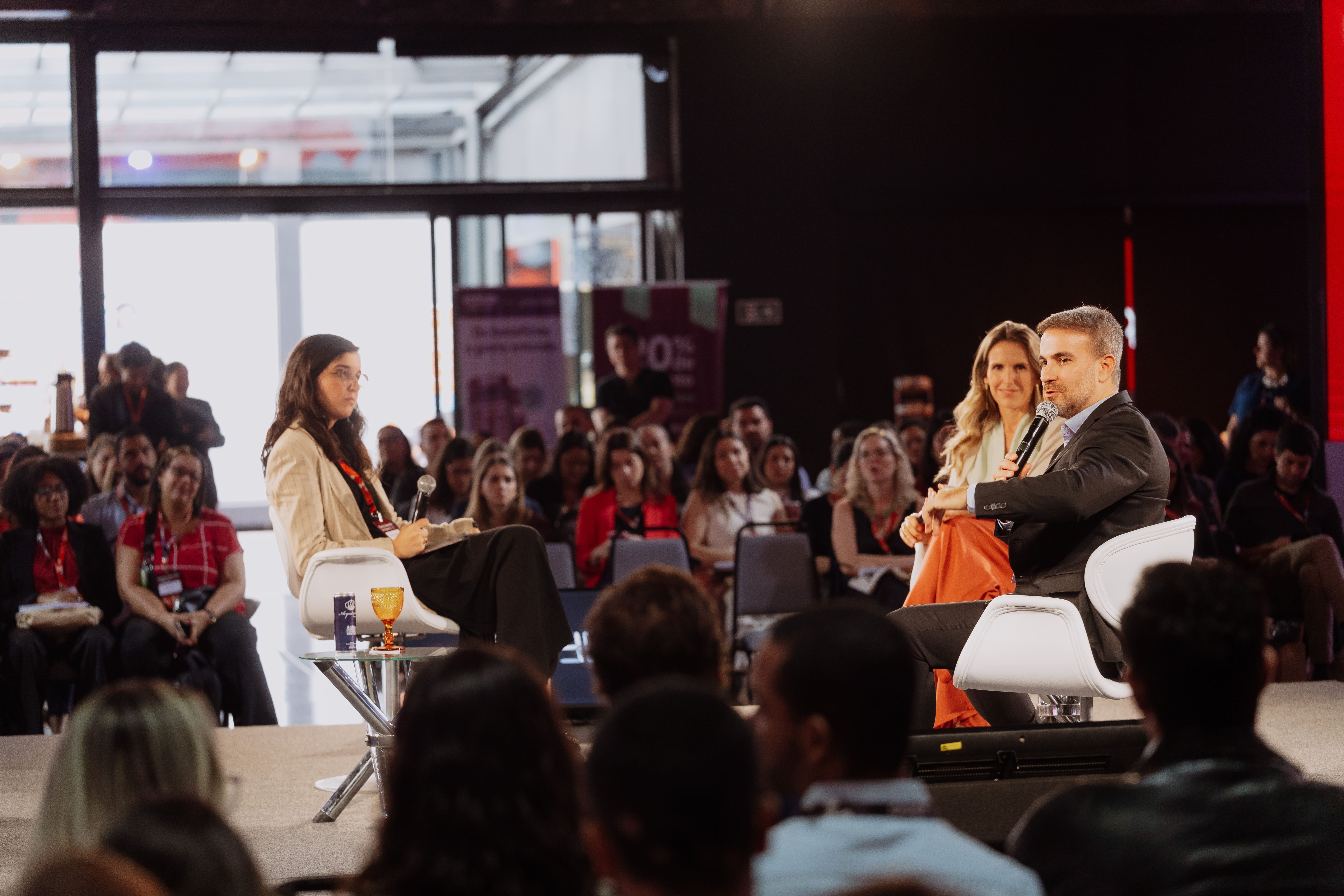 Já Deborah trouxe um outro viés para a discussão: a jornada de jovens talentos na era da IA. Contrariando o receio de que a tecnologia diminua vagas de entrada, ela argumenta que os jovens são aceleradores da mudança, pois já trazem a mentalidade da IA em sua forma de trabalhar.
